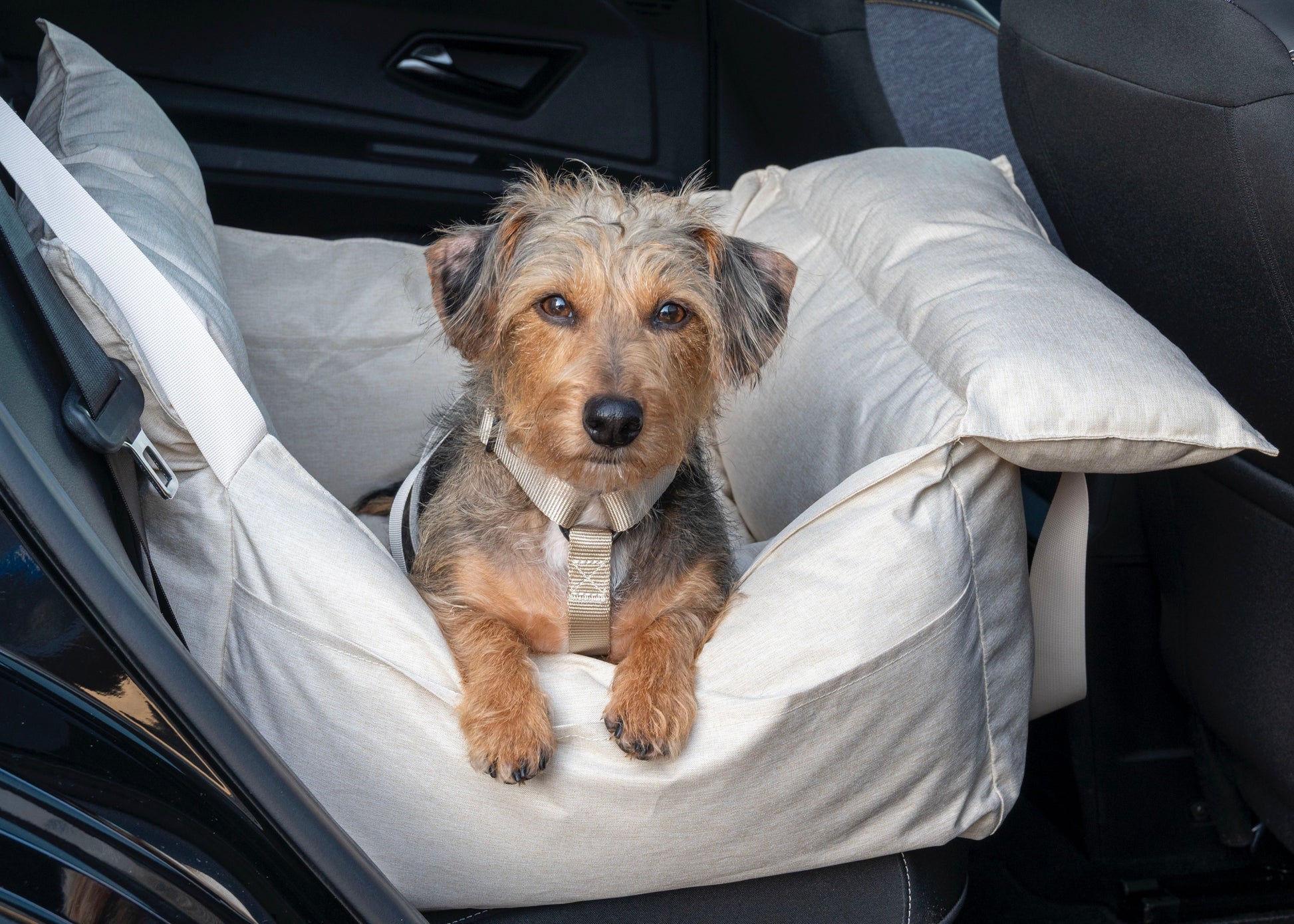 Dankzij de verstelbare veiligheidsriem met gesp zet je jouw hond veilig vast aan zijn tuigje tijdens het rijden. De stoel is eenvoudig te bevestigen op zowel de voor- als achterbank. Extra grote zijvakken bieden ruimte voor reisbenodigdheden en met de stevige handgrepen neem je de autostoel gemakkelijk mee.
