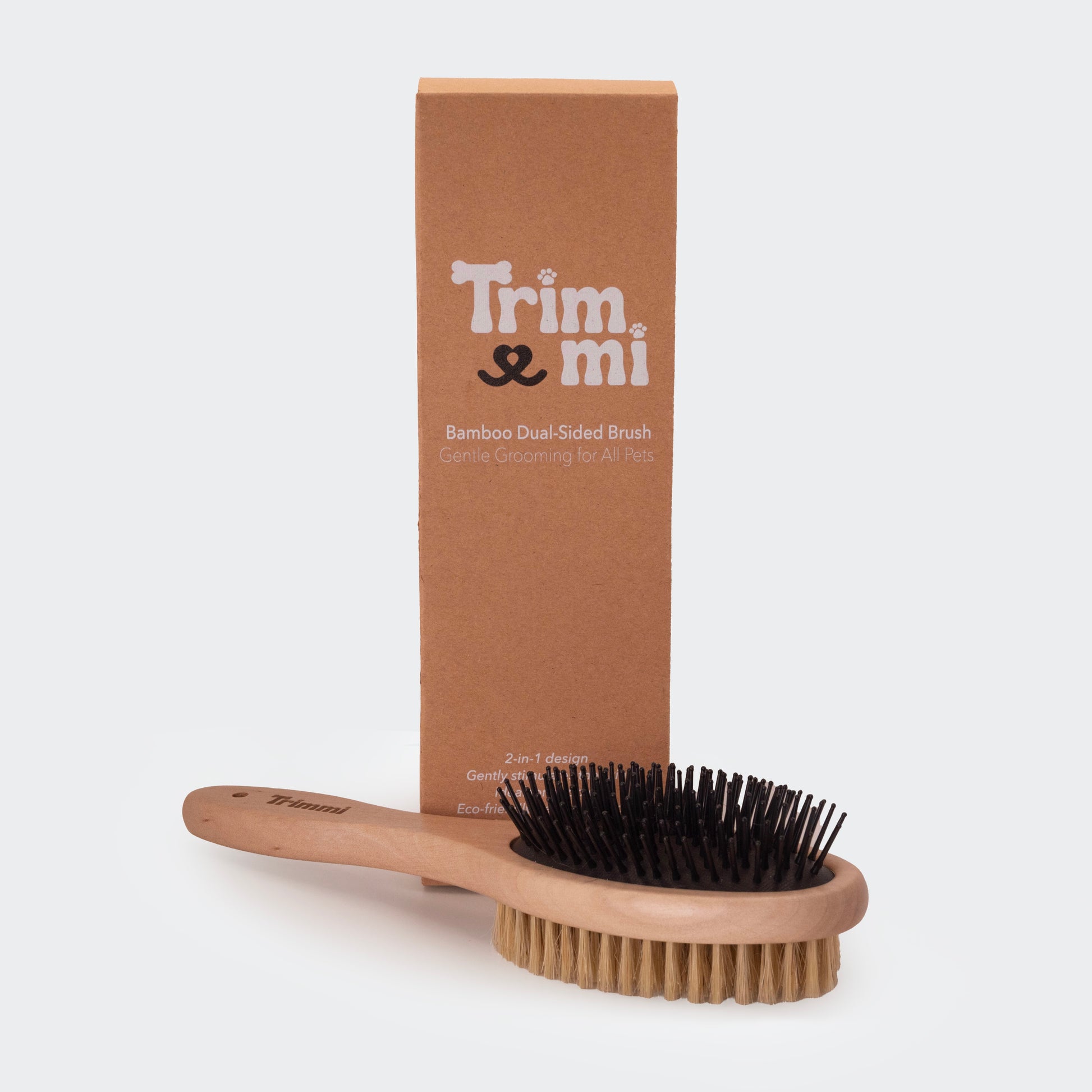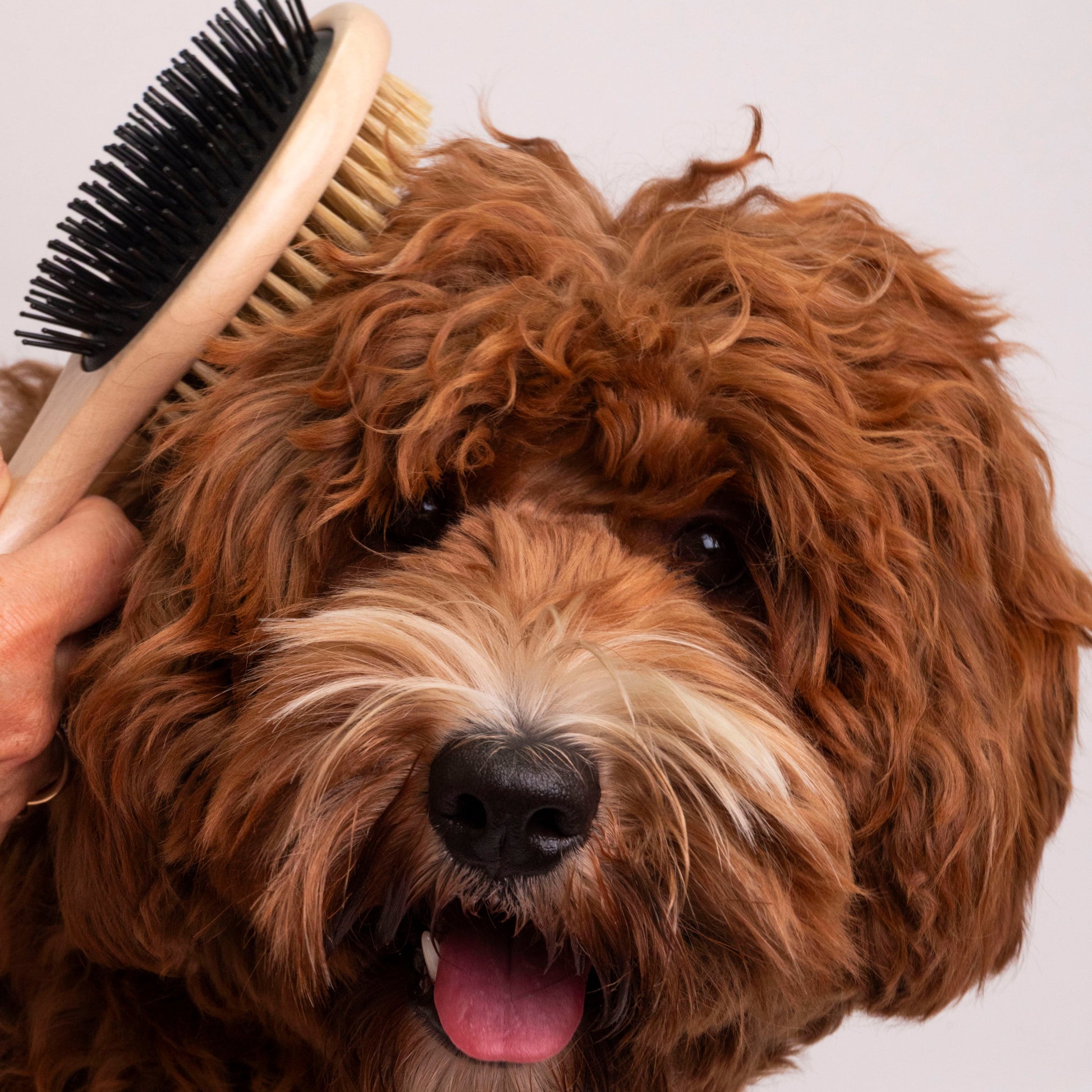 Deze dubbelzijdige bamboe borstel is een echte allrounder voor de vachtverzorging van jouw hond. De zachte borstelzijde masseert de huid en verwijdert stof en losse haartjes, terwijl de pinzijde helpt om klitten los te maken en dieper in de vacht te komen. De borstel is ideaal voor puppy’s, gevoelige honden én geschikt voor alle vachttypes.